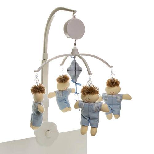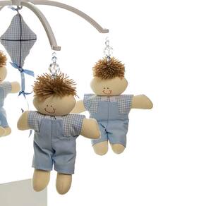 O momento do bebê em seu berço tem que ser relaxante e, ao mesmo tempo, deve ter elementos de entretenimento. O nosso móbile tem uma música agradável que vai embalar o sono dos pequenos e, ao acordar, terá lindos enfeites para entreterse estimulando a coordenação motora e visual do nenê. Dados TécnicosMóbile musical com estrutura em plástico decorado com bonequinhos e pipa de tecido presos com cordão encerado altamente resistente.Algumas peças da decoração central pode ter variações de acordo com a disponibilidade no momento. FixaçãoA estrutura do móbile pode ser fixada no berço através de rosca ajustável. Informações adicionaisO móbile possui sistema giratório movido à corda portanto não utiliza pilhas.A música tocada pelo móbile é suave sendo agradável para o bebê e a duração do som ao rotacionar toda a corda pode variar de 2 a 3 minutos. INMETROProduto decorativo. MedidasAltura: 55 cmLargura da Haste Decorada: 29 cm x 29 cmHomologação Inmetro: CE-BRI/IQB 000228 54850/21-024