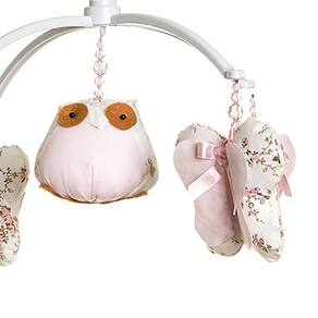 O momento do bebê em seu berço tem que ser relaxante e, ao mesmo tempo, deve ter elementos de entretenimento. O nosso móbile tem uma música agradável que vai embalar o sono dos pequenos e, ao acordar, terá lindos enfeites para entreterse estimulando a coordenação motora e visual do nenê. Dados TécnicosMóbile musical com estrutura em plástico decorado com coruja e borboletas em tecido presas com cordão encerado altamente resistente.Algumas peças da decoração central pode ter variações de acordo com a disponibilidade no momento. FixaçãoA estrutura do móbile pode ser fixada no berço através de rosca ajustável. Informações adicionaisO móbile possui sistema giratório movido à corda portanto não utiliza pilhas.A música tocada pelo móbile é suave sendo agradável para o bebê e a duração do som ao rotacionar toda a corda pode variar de 2 a 3 minutos. INMETROProduto decorativo. MedidasAltura: 55 cmLargura da Haste Decorada: 29 cm x 29 cmHomologação Inmetro: CE-BRI/IQB 006455 55098/22-001