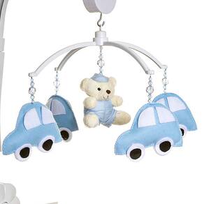 Dados Técnicos Móbile musical com estrutura em plástico decorado com ursinho de pelúcia e carrinhos de feltro presos com cordão encerado altamente resistente. Algumas peças da decoração central pode ter variações de acordo com a disponibilidade no momento.