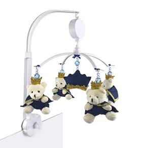 Dados Técnicos Móbile musical com estrutura em plástico decorado com ursinhos príncipes e coroa de feltro presos com cordão encerado altamente resistente. Algumas peças da decoração central pode ter variações de acordo com a disponibilidade no momento.