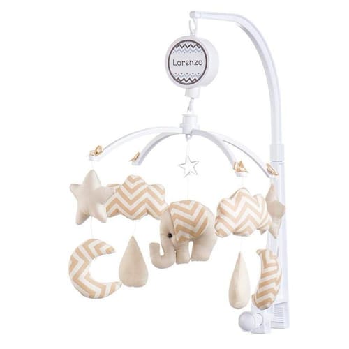 O Móbile para berço musical e giratório Elefantinho Bege é o acessório ideal para dar o toque final na decoração do quarto do bebê. Possui uma doce melodia para acalma-lo, tão doce quanto uma canção de ninar da mamãe. Além disso, o móbile é giratório buscando estimular a interação da criança com o objeto. Características: - Produto de Fabricação Nacional - Pelúcias antialérgicas - Peças são presas com cordão encerado altamente resistente. - A estrutura em plástico não tóxico pode ser fixada no berço, chiqueirinho, ou qualquer plataforma através de rosca ajustável. - Possui sistema giratório movido à corda. não utiliza pilhas. - O tempo da música pode variar entre 1:30 e 2:00 minutos. - A montagem é fácil e segura, atarraxar com firmeza na lateral do berço ou chiqueirinho do bebê. Especificações Técnicas: - Dimensões do produto (C x L x A): 40cm x 30cm x 45cm - Material: Plástico - Cor: Bege - Modelo: Elefantinho - Marca: Sleepbaby Móbiles - Certificação: INMETRO CEBRI/BRICS0056717 Observação: Todos os nossos produtos passaram pelo rigoroso teste do Inmetro sendo aprovados e certificados. No Brasil é obrigatório o selo do Inmetro em qualquer produto destinado a crianças. não brinque com a segurança do seu bebê. Não compre produtos que não foram testados e aprovados pelo Inmetro.