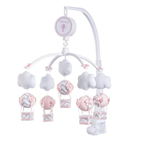 O Móbile para berço musical e giratório Balões Rosa é o acessório ideal para dar o toque final na decoração do quarto do bebê. Possui uma doce melodia para acalma-lo, tão doce quanto uma canção de ninar da mamãe. Além disso, o móbile é giratório buscando estimular a interação da criança com o objeto.