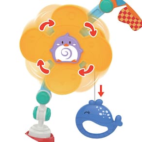 - Desenvolve as habilidades motoras: Deixe seu filho explorar as várias atividades e recursos, puxando a hélice, olhando no espelho, girando as contas no chocalho.