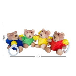 Informações do Produto: O Móbile para carrinho em pelúcia ursos plush é um móbile prático, portátil, ideal para acompanhar a criança durante os passeios. Com quatro adoráveis e coloridos ursinhos de pelúcia na temática brinquedos, que instigam a sensibilidade motora e a interação, este móbile foi projetado para desenvolver as habilidades sensoriais do olhar e exploração sensorial. As cores vibrantes e em alto contraste estimulam a coordenação das mãos e visão e ajudam no desenvolvimento da imaginação. É fácil de instalar, idealmente no carrinho do bebê, podendo acompanhá-lo em todos os lugares e momentos.