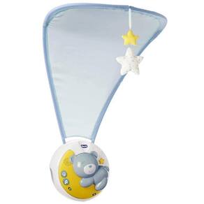 Next2Moon, da linha First Dreams da Chicco, é um móbile de berço especialmente desenvolvido para o berço portátil Next2Me, que também é compatível com a maioria das camas e berços de madeira. Um inovador projetor que cria uma atmosfera mágica e relaxante para o bebê através da projeção colorida no largo dossel