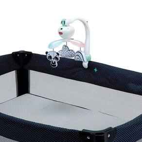 O Móbile Take Along Black & White Décor é um móbile com alto contraste e atividades envolventes que acompanha o bebê por todos os lados. Desde o nascimento os pequenos terão a sensação de segurança e continuidade invocada pela companhia do móbile durante os passeios. Com 30 minutos de música e 5 melodias encantadoras, acalmar e divertir o bebê será uma tarefa fácil Com design inteligente, este móbile é facilmente fixável na maioria dos berços, bebês-conforto, carrinhos e muitos outros, tornando-o o brinquedo de viagem perfeito. Os personagens em preto e branco ficam pendurados e rodam para proporcionar estímulo visual e emocional significativo, além de encorajá-los a produzir sons e se comunicar.