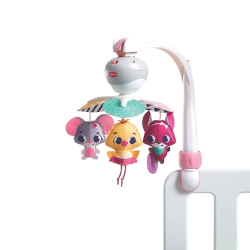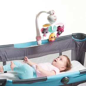 Móbile que pode ser encaixado em diferentes acessórios, como berços, cercados,bouncers, carrinhos e moisés. Oferece 30 minutos de música contínua. Um mobilecolorido e cativante que vai a toda parte com o bebê!