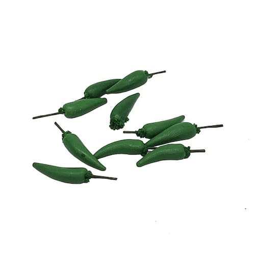 Tamanho: (um) com cerca de 1,5 cm de comprimento Material: resina Peso: 1,5 g O conjunto de 10 unidades de pimenta malagueta inclui 10 pimentas verdes em miniatura, projetadas para trazer detalhes realistas de alimentos às cozinhas, mercados ou mesas de jantar de casas de bonecas. Design realista Feito de resina com acabamento verde natural e detalhes no caule, cada pimenta parece realista e adiciona autenticidade às vitrines de comida em miniatura. Compatível com escala 1/12. Tamanho perfeito para casas de bonecas e bonecas em escala 1/12, ideal para colecionadores, amadores e crianças que adoram brincadeiras de fingir com temas gastronômicos. Creative Play & DisplayÓtimo para cozinhas de casas de bonecas, restaurantes ou mercados ao ar livre; também é adequado como miniadereços decorativos para aprimorar as coleções de expositores. Aviso importante Não é um brinquedo para crianças pequenas, evite engolir ou ferir acidentalmente; este produto é um modelo de brinquedo, não para uso humano real; recomendado para casas de bonecas e bonecas 1/12.