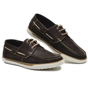 CARACTERÍSTICASDOPRODUTO Material: Couro Acabamento: Nobuck Material Interno: Sem forro Palmilha: EVA EstilodaPeça: Liso Solado: Borracha AlturadoSalto(cm): 1cm