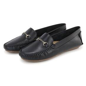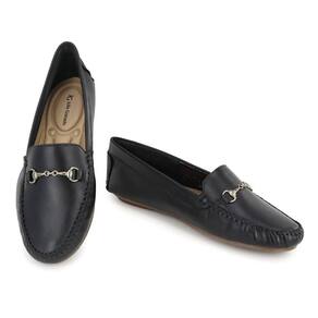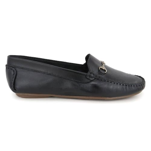 Mocassim Dockside Feminino Couro Cabedal Metal Bico Redondo - 36 - Preto