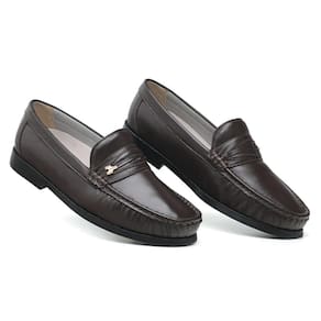 Mocassim Em Couro Masculino Moda Casual Sola Macia Costura Reforçada Passeio - 37 - Marrom
