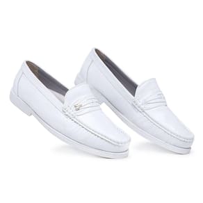 Mocassim Em Couro Masculino Moda Casual Sola Macia Costura Reforçada Passeio - 44 - Branco