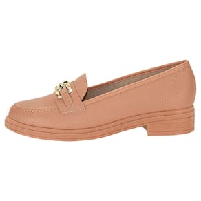 O Mocassim Feminino Beira Rio é confeccionado em Napa Floather Napoli de alta qualidade com detalhe metalizado no cabedal, acabamento em costura, forro interno em têxtil, palmilha em PU e solado em borracha antiderrapante com salto baixo de três centímetros e meio.