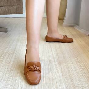 Mocassim Feminino Bico Quadrado Detalhe em Nó Caramelo - 35 - Marrom Cacau
