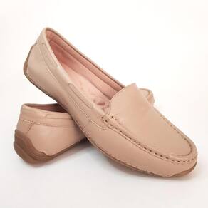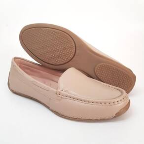 Mocassim Feminino Couro Costura Liso Conforto Casual Moda - 39 - Bege