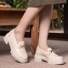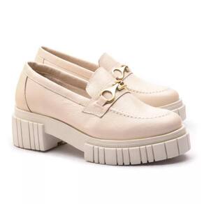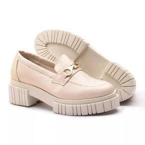 Mocassim Feminino em Couro Tratorado Casual Conforto Fivela - 36 - Bege Claro