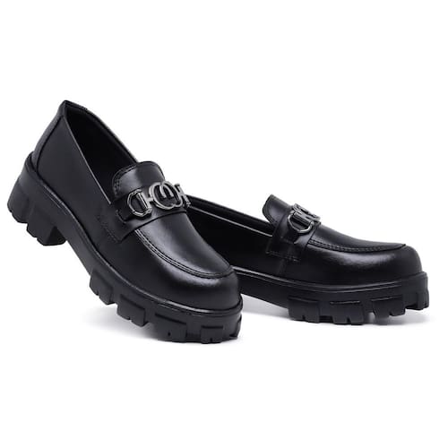 Mocassim Feminino Preto Couro Conforto Sola Tratorada Moderno - Preto - 39