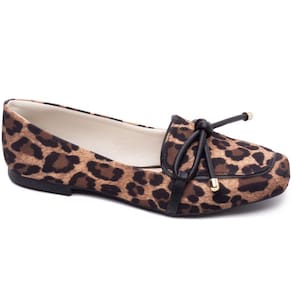 MOCASSIM FEMININO RASTEIRO TECIDO ONçA MARROM (456.012B)