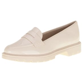 O Mocassim Feminino Salto Baixo Beira Rio é confeccionado em material envernizado com acabamento em costura, palmilha em PU macio e solado em borracha antiderrapante com três centímetros de espessura.