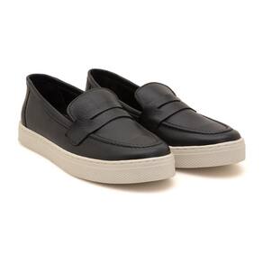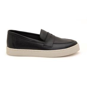 Mocassim Feminino Slip Couro Calce Fácil Bico Redondo Casual - 36 - Preto