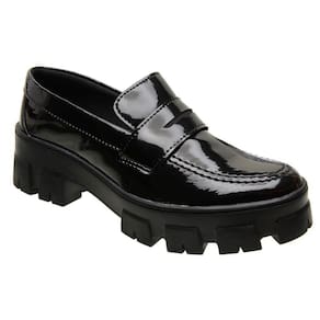 Mocassim Feminino Tratorado Confortável Elegante Verniz - 39 - Preto
