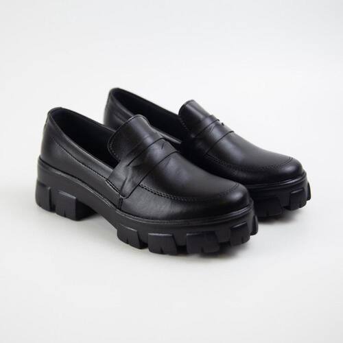 Mocassim Feminino Tratorado Salto Baixo Casual Conforto Moda - 36 - Preto