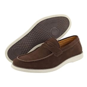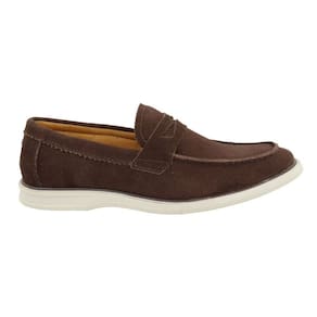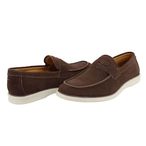Mocassim Loafer Masculino Couro Camurça Nobre Calce Facil Old Money Solado TR Confortavel Macio - 39 - Marrom Chocolate