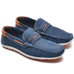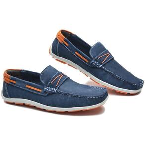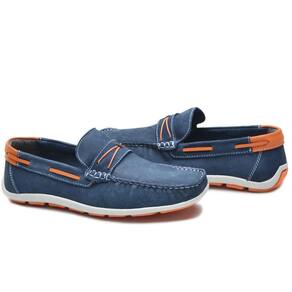 Mocassim Masculino Couro Bico Quadrado Solado Borracha - 42 - Azul Marinho