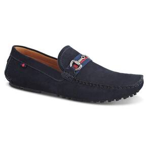 Mocassim Masculino Couro Calce Fácil Casual Confortável - 39 - Azul Marinho