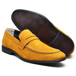 Mocassim Masculino Couro Calce Fácil Confortável Casual - 39 - Amarelo