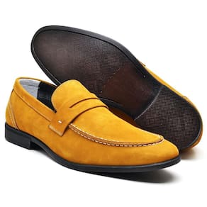 Mocassim Masculino Couro Calce Fácil Confortável Casual - 37 - Amarelo
