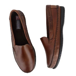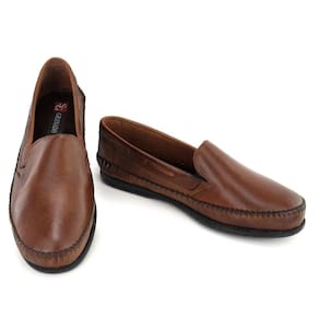 Mocassim Masculino Couro Liso Bico Redondo Calce Fácil - 37 - Marrom