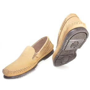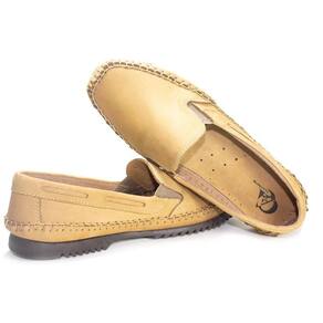 Mocassim Masculino Couro Sapatilha Calce Fácil Conforto - 40 - Bege Claro