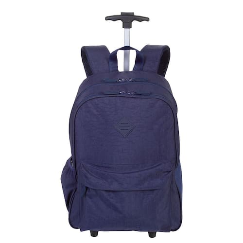 Moch car externo sestini rolling crinkle - azul leve, prática e ainda com carrinho. A sestini rolling é a pedida certa para o dia a dia de quem passa o dia fora de casa e precisa levar muita coisa. Feita em náilon crinkle - aquele com aspecto amassado - a mochila que já era fácil de carregar tem a vantagem do sistema de rodinhas e carrinho. Ainda assim, vem com alça espumada de costas. São dois compartimentos, mais o bolso frontal, todos com fecho de zíper, e um bolso lateral para garrafinha. Azul Grande Mochila carrinho Ean: 7899650123800