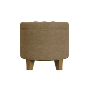 Pufe de armazenamento redondo Benjara Wes, veludo, madeira dura, 19 polegadas, marrom mocha e marrom carvalho néctar das flores