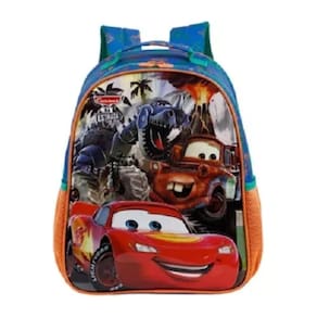 Em tamanho 16 , produzida em poliéster resistente e estampado. Painel frontal em PVC vincado - Compartimento principal amplo , 2 bolsos laterais mesh, zíper com puxadores personalizados, alça de mão em nylon com poliester e piping forrado. Alças acolchoadas com regulagem de tamanho para maior conforto.
