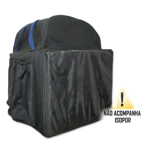 Plástico Frontal para Endereços, Panfletos e logo marca; Alças Ajustáveis com Fecho em abs; Fechamento Através de Zíper de qualidade; Possui Partes Refletivas frontais; Suporta 4 Garrafas de refrigerante nas laterais; Mochilão superior térmico para pizzas e refrigerantes,etc; Caixa de isopor: NÃO ACOMPANHA Fabricada em tecido Nylon 600, de alta resistência.