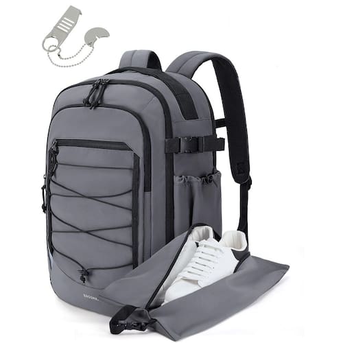 BAGSMART Mochila de viagem de mão, grande de 43 cm, aprovada para viagem, item pessoal, bolsa de viagem com bolsa de sapatos, mochila casual resistente à água de 30 L, preta - Como item pessoal aprovado pela companhia aérea: as dimensões desta mochila de viagem (47 x 32 x 20 cm) atendem aos mais rigorosos padrões de tamanho descritos pela Associação Internacional de Transporte Aéreo (IATA) para a maioria dos voos, permitindo armazenamento sem esforço em compartimentos aéreos e espaços sob o assento nas companhias aéreas. Esta mochila de viagem maior para homens possui uma abertura conveniente de 180 graus para facilitar a passagem pela segurança do aeroporto - Excelente segurança e privacidade: esta mochila de mão aprovada por voo apresenta um design atualizado de barreira de porta para melhorar a segurança e a privacidade, evitando acesso não autorizado sem instalação complicada e dando a você tranquilidade se você estiver viajando a negócios, de férias ou em uma aventura solo, enquanto os zíperes no compartimento do computador protegem seu computador contra roubo. - Grande capacidade e vários bolsos: a mochila de viagem possui 4 compartimentos espaçosos para acomodar itens essenciais diários e necessidades de viagem. Seu compartimento principal oferece amplo espaço, com 5 a 8 peças de roupas, livros e outros itens. O compartimento separado para laptop cabe confortavelmente em um laptop de 17 polegadas. Além disso, a mochila de mão feminina tem vários bolsos e um sistema de cordão elástico, garantindo armazenamento organizado e proporcionando espaço extra para seus pertences. - Com bolsa de sapato e bolso úmido: esta mochila de viagem resistente à água para mulheres inclui uma bolsa de sapato adicional. A bolsa para sapatos tem 42 cm de comprimento e pode conter de 1 a 2 pares de sapatos e também pode ser usada como bolsa de lavanderia. A mochila de viagem está equipada com um bolso seco e molhado feito de material impermeável de alta densidade. Este bolso é ideal para armazenar artigos de higiene pessoal e roupas úmidas, garantindo que sua viagem permaneça bem organizada. - Confortável e durável: design confortável com fluxo de ar nas costas com acolchoamento espesso e macio e alívio eficaz da pressão traseira, enquanto equipado com uma fivela ajustável no peito, você pode caminhar mais facilmente. A mochila para computador é feita de material de poliéster durável, oferecendo proteção mais segura para seus pertences. É uma mochila de fim de semana, caminhadas, acampamento, viagem de avião, mochila de ginástica esportiva, mochila de trabalho, mochila universitária ou mochila casual. - Multiuso: seu visual chique a torna uma mochila universitária, mochila de viagem, mochila de computador, mochila de livros e mochila de negócios. A mochila de mão aprovada por voo pode ser colocada acima e embaixo do assento, e é ideal para uma viagem de fim de semana, viagem de negócios e viagens. Esta mochila grande é perfeita para faculdade, trabalho, uso diário e atividades ao ar livre, ou até mesmo perfeita como um presente para amigos, familiares ou mulheres, para aniversários ou Dia dos Namorados.