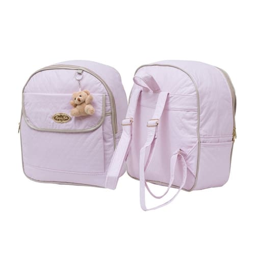 Mochila bebê maternidade em material sintético mochila tem bolso frontal com fechamento em tiras aderentes, 2 bolsos laterais, alças ajustáveis kit impermeável tecido interno napa sarja polipropileno mochila: 33 cm de altura x 27 cm de largura x 14 cm de espessura produto nacional