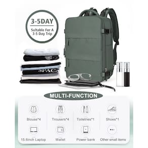 -?Compartimento para sapatos?: O compartimento para sapatos está localizado na parte inferior da mochila e o compartimento separado foi projetado para ser limpo e higiênico e não mancha as roupas. O espaço é grande o suficiente para um par de sapatos tamanho 9 dos EUA. Você pode colocar tênis, mocassins, sandálias ou chinelos. O compartimento para sapatos também tem duas aberturas para mantê-lo ventilado e sem odores.
