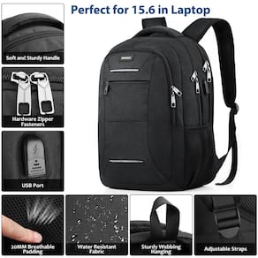 mochila - Espaço de armazenamento e bolsos: o bolso principal da mochila escolar está equipado com um compartimento macio separado para laptops de 15,6 polegadas e Macbooks/notebooks de 15 polegadas, 14 e 13 polegadas. O design de esponja macia protegerá seu laptop. Fora do compartimento, um compartimento de embalagem mais espaçoso comporta um iPad, mouse, carregador, fichário, livros, roupas, etc. Os bolsos de malha estão localizados nas laterais de garrafas de água e guarda-chuvas compactos para manter seus pertences organizados e fáceis de encontrar - Material resistente e sólido: feito de tecido de poliéster impermeável e resistente com zíperes de metal. Garante um uso seguro e duradouro todos os dias e fins de semana. Serve bem como mochila de trabalho de escritório, mochila fina de carregamento USB, perfeita como mochila para laptop, mochila de viagem, mochila universitária, mochilas para hombres. Presente premium para a família, amigos, colegas de trabalho, aniversário, Natal para faculdade, bacharelado, graduação, homens, adultos viajando - Confortável e resistente: design confortável com fluxo de ar nas costas com acolchoamento ventilado de vários painéis espessos, mas macios, oferece o máximo suporte para as costas. Alças de ombro respiráveis e ajustáveis aliviam o desconforto do ombro. Alça superior acolchoada de espuma para um longo tempo de uso - Design de porta USB e antifurto: porta de carregamento USB externa com cabo de carregamento embutido, oferece um carregamento conveniente do seu dispositivo eletrônico em qualquer lugar, o bolso traseiro com zíper oculto antiroubo manterá seus pertences valiosos, como cartões de crédito ou bolsa, seguros - Idade: adequado para maiores de 3 anos