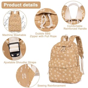Bluboon Mochila para meninas escolares linda mochila de veludo cotelê infantil mochila para laptop mochila presente para mulheres, Flor bege de veludo cotelê marrom - Dimensões desta mochila para meninas: 33 x 15 x 43 cm, perfeita para viagens escolares e casuais. Se você está procurando uma mochila fofa e elegante, esta é a sua escolha ideal. A mochila usa um design de compartimento para laptop, há mais espaço para armazenar itens necessários, roupas, sapatos, livros, telefones celulares, carteiras, etc. - Esta mochila escolar infantil com alças ajustáveis alivia o desconforto do ombro. Confortável de carregar. Uma alça e uma alça na parte superior. Zíperes de alta qualidade. Estruturas resistentes. Estilo casual para: escola, ar livre, compras, encontros, viagens, trabalho, etc. - Um presente perfeito para crianças, a linda mochila é uma bolsa de presente perfeita para meninas na temporada de volta às aulas. Esta mochila para crianças é perfeita como presente para meninas no Natal, dia dos namorados ou aniversário. - Mochilas para meninas adolescentes feitas de material resistente à água durável de alta qualidade, elegante e moderna, mochila para meninas escolares com 2 bolsos laterais. Compartimento para laptop e um bolso com zíper estão dentro do compartimento principal. A maioria das necessidades diárias da escola pode ser carregada. Mochila infantil BLUBOON para escola primária adequada para crianças de 3 anos ou mais. - Esta mochila moderna para adolescentes é fácil de combinar com tudo, para uso diário, escola, deslocamento, escapadela de fim de semana, caminhadas curtas, acampamento e muito mais. Presentes práticos para adolescentes, meninas, amigas, mães. O estilo da mochila casual é breve e mostra seu temperamento excepcional.