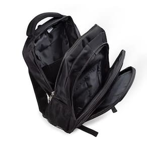 Além das seções com zíper, a mochila fornece dois bolsos laterais externos. Os bolsos laterais funcionam bem para itens pequenos de fácil acesso enquanto estiver usando a mochila.