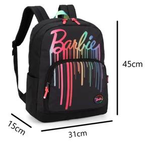 Mochila De Costas Barbie Luxcel Infantil Escolar   Leve o glamour para a escola com a Mochila Escolar da Barbie! Modelo deslumbrante na cor preta, esta mochila combina estilo e praticidade. Sempre com muito glamour, vem com todo o seu charme com suas estampas diferentes e exclusivas. Arrase no look escolar com a elegância da Barbie!   Características da Mochila Escolar: - 1 Bolso Principal com bastante espaço - 1 Bolso Frontal - 2 Bolsos laterais para squeeze - Alça de mão reforçada na parte superior - Alça de costas acolchoadas e reguláveis - Fecho com zíper personalizado - Logo Patch - Material: 100% Poliéster   Dimensões da Mochila Escolar: Altura: 45 cm Largura: 31 cm Profundidade: 15 cm   Conteúdo: - 1 Mochila