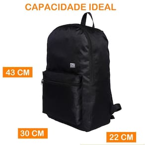 Dimensões: Largura 32 cm x Altura 45 cm x Profundidade 12 cm Capacidade: 20L Peso leve e ideal para transportar o necessário sem sobrecarregar.