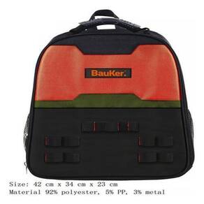 Características principais: Estrutura rígida: Facilita a abertura e o acesso rápido às ferramentas, mantendo a organização durante o uso. Capacidade de 15 litros: Ideal para transportar ferramentas essenciais de forma organizada e prática. 4 compartimentos: Oferece amplo espaço interno e externo, incluindo bolsos adicionais para armazenamento eficiente. Material resistente: Feita em poliéster oxford 600D, com 5% plástico, 3% metal e 92% poliéster, garantindo durabilidade mesmo em condições de uso intenso. Fechamento por zíper: Zíper reforçado para segurança no transporte. Design funcional: Combina as cores preto, verde e laranja, oferecendo um visual moderno e profissional. Especificações: Dimensões do Produto: 42x34x23cm Dimensões da Embalagem: 34x17x45cm Peso bruto: 1,677 kg Material: Poliester 600D, com partes em plástico e metal Cor: Preto, verde e laranja Garantia: 3 meses Ideal para quem busca uma solução resistente e organizada para carregar ferramentas, a Mochila Bolsa Ferramenta Pro é a opção perfeita para o dia a dia de trabalho, oferecendo espaço, segurança e durabilidade.