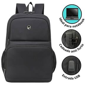 Mochila bolsa notebook laptop anti furto senha cadeado usb Cor: preto Mochila notebook anti furto com senha e entrada para cabo usb acompanha cabo usb Características: Mochila antifurto de costas ideal para notebook, escola, faculdade, trabalho, viagens, passeios, academia, motociclistas etc. Própria para organizar roupas, notebooks, cadernos, livros, ferramentas, acessórios para o trabalho dentre outros itens. Especificações técnicas: - cadeado anti furto com senha - etiqueta para escrever nome e telefone - entrada usb para powerbank - leve - reforçada - confortável - produto e de alta qualidade; - design clean; - ideal para notebooks; - material 100% poliéster - alça de mão acolchoada - 3 compartimentos - 1 bolso frontal - bolsos laterais porta garrafa - zíperes duplo cursor, resistentes, e personalizados - compartimento para notebook Peso:600g Comprimento; 35cm; Altura: 46cm; Largura: 16cm; Conteúdo da embalagem: - 01 mochila; - 01 cabo usb macho/fêmea Marca: Não Informado