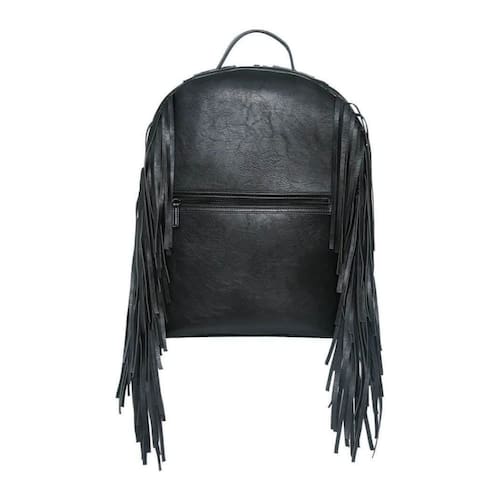 mochila oferece uma parte traseira de malha respirável e alças acolchoadas para maior conforto - Zíperes: zíperes expostos com zíper de couro vegano