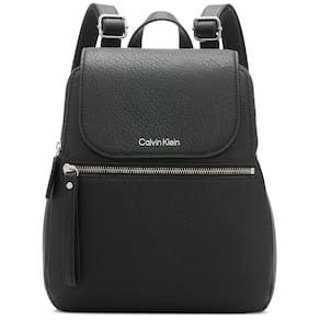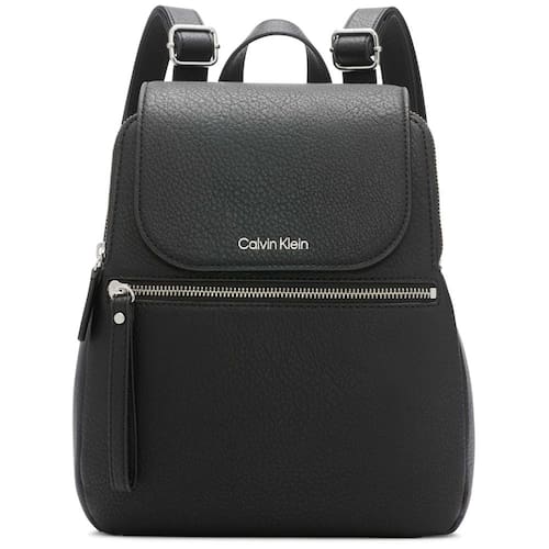 Mochila Calvin Klein Reyna Novelty Key Item com aba, combinação preta/prata, tamanho único — Estilo para todos os dias: esta mochila feminina tem o tamanho perfeito para guardar o que você precisa com bolsos internos e externos convenientes — Toques de design: esta mochila feminina é feita de couro sintético e detalhada com o logotipo e a marca exclusivos da Calvin Klein — Características convenientes: alças de ombro ajustáveis possibilitam um ajuste perfeito enquanto o fecho magnético mantém o que você valoriza com segurança dentro da bolsa de grife — Mantenha-se organizado: o zíper superior com 2 zíperes bolsos, 1 bolso interno com zíper, 1 pequeno bolso interno deslizante e 1 bolso externo com zíper, transformam bolsas femininas como esta em um item básico do guarda-roupa