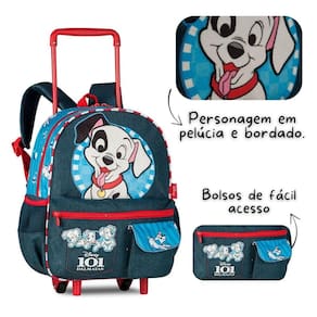 A mochila de carrinho 101 Dálmatas DL27035 é perfeita para quem ama unir praticidade, fofura e organização. Confeccionada em poliéster resistente, traz o personagem em pelúcia com detalhes bordados e puxadores de zíper personalizados que deixam a peça ainda mais especial. Seu compartimento principal é espaçoso para levar todos os materiais escolares, além de dois bolsos frontais que ajudam a manter tudo separado e organizado. Nas laterais, bolsos telados garantem praticidade para carregar garrafinhas. Pensada para acompanhar a rotina escolar de forma versátil, pode ser Utilizado como carrinho, com rodinhas traseiras resistentes, puxador em alumínio e base frontal de apoio, ou nas costas, com alças ajustáveis e acolchoadas que oferecem mais conforto. Também conta com alça superior de mão para facilitar no dia a dia. Dimensões aproximadas: 33x27x12cm Marca: Não Informado